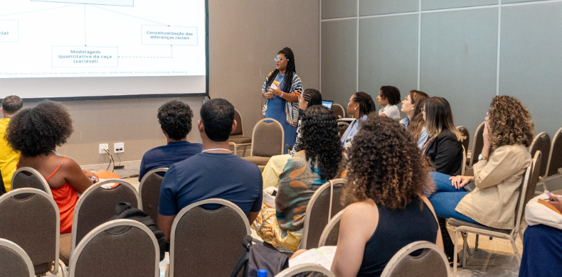 Ministrada pela professora Dandara Ramos, do Instituto de Saúde Coletiva da UFBA, a oficina reuniu pesquisadoras(es), estudantes e ativistas para discutir como a categoria raça é produzida, mobilizada e tensionada no campo da saúde coletiva. A atividade evidenciou a centralidade do debate racial nas políticas públicas, na formação profissional, na produção científica e na prática em saúde.