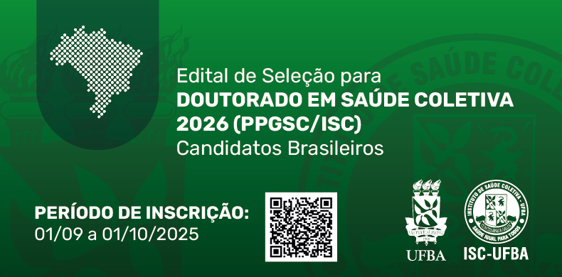 Dê mais um importante passo na sua trajetória acadêmica através do Programa de Pós-Graduação em Saúde Coletiva de nota máxima na Avaliação da Capes! Já está disponível para consulta o edital de seleção para o Curso de Doutorado Acadêmico do PPGSC do Instituto de Saúde Coletiva da UFBA. As inscrições acontecem de 01/09 a 01/10/2025.