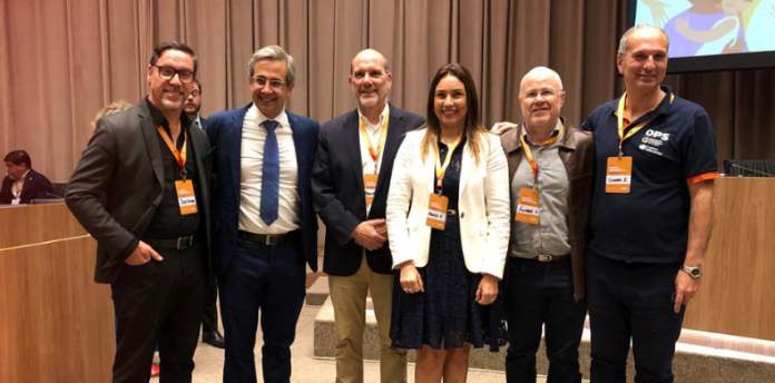 Consultores internacionais da OPAS, Dr. Claudio Sosa, Dr. José Rojas, Dr. Rodolfo Gomez e Dr. Gabriel Osanan, promoveram debates com atualizações sobre o manejo das urgências e emergências obstétricas, assim como sobre a contracepção imediata pós-parto e pós-aborto.